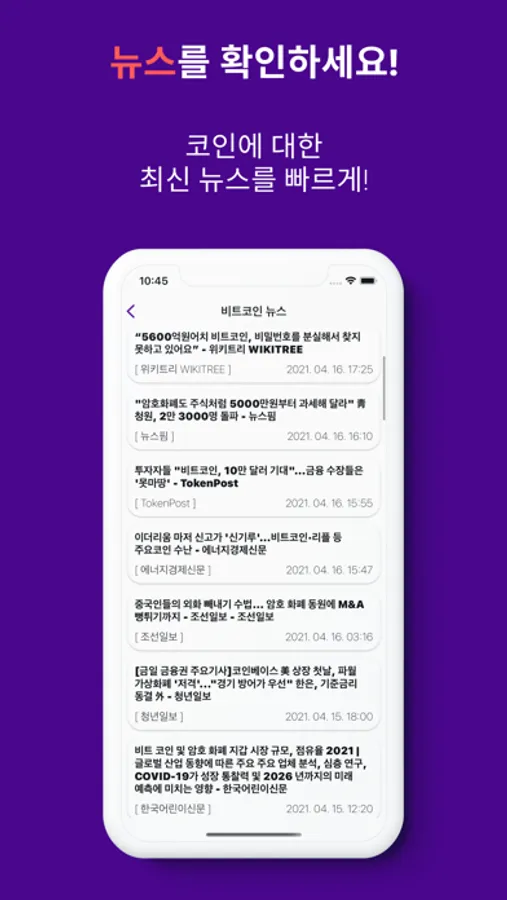코인에 대한 뉴스를 한 눈에 확인하고 거래소 별 시세를 체크하면서 투자하세요.