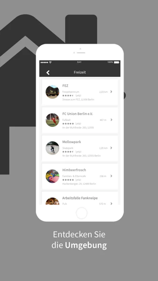 Informieren Sie sich z.B. über Geschäfte, Ärzte, Erstatten und über die Öffnungszeiten in Ihrer unmittelbarer Umgebung.