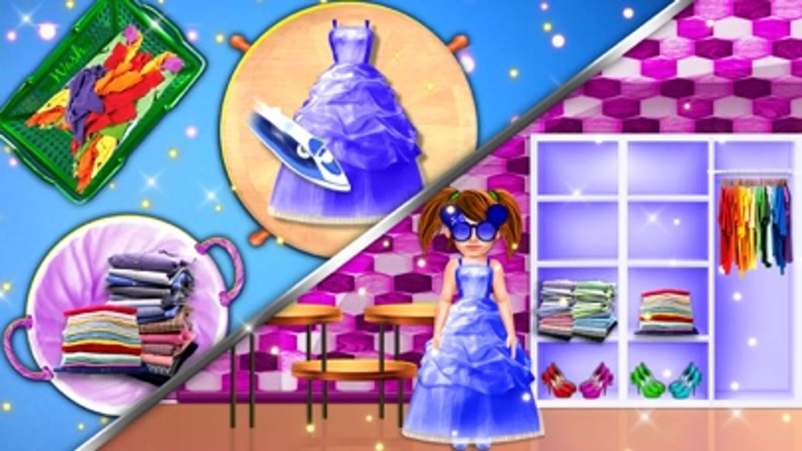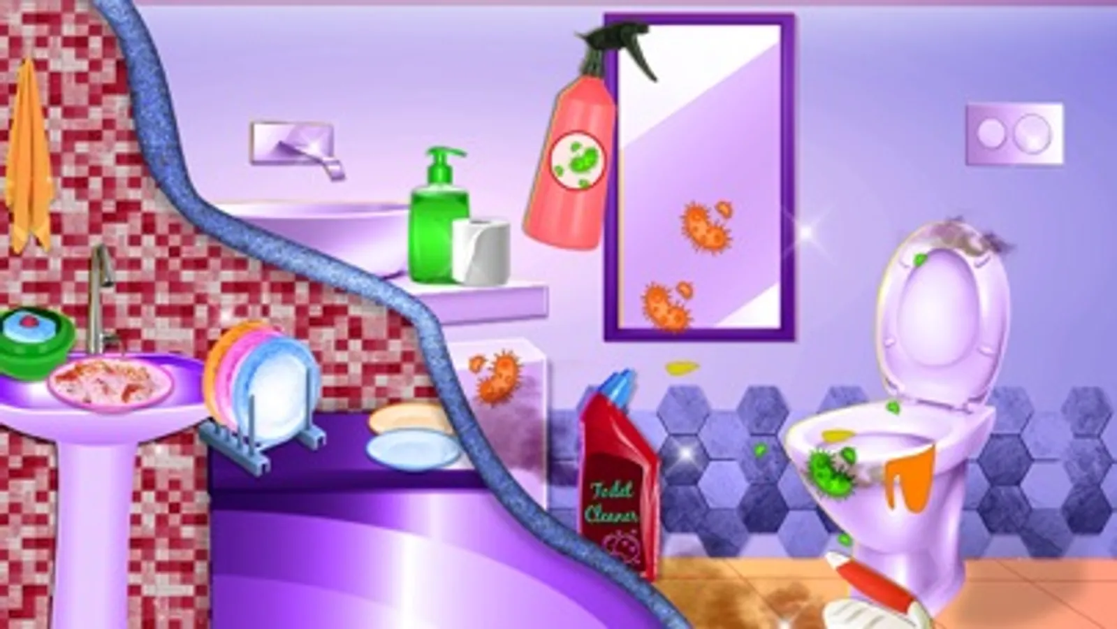 Daddy cannot do all things by himself. Are you ready for a messy house makeover? Start Cleaning by living room while mommy is away. Then go ahead with Dish clean up, fridge cleaning, toilet cleaning, Messy Clothes Perfect Ironing. The home cleaning game involves so many cleaning and repairing activities. The girl wants her home clean and she wants your help, too. Help daddy to perform all the cleaning and repairing activities in this house cleaning game.