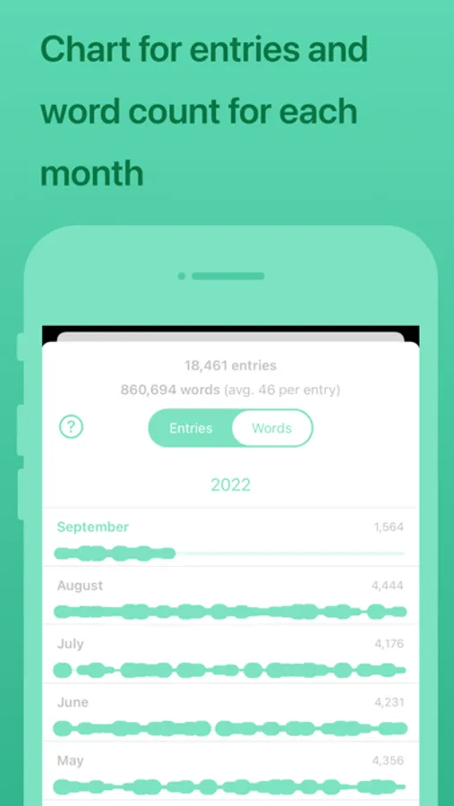 - All entries can be exported as JSON - a format which can be read by humans, but also imported into other software in the future. Your journal should live as long as you do, and outlive any app or platform.