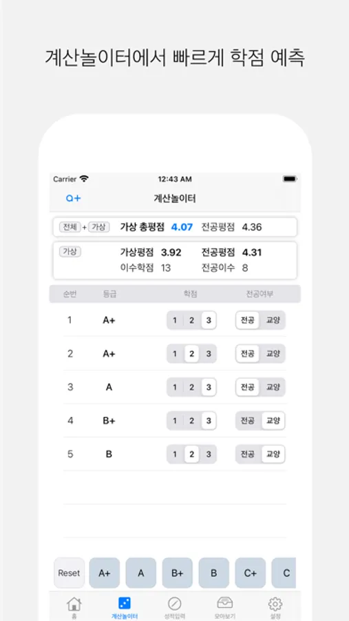iOS 에서 쓸 수 있는 가장 편하고 유용한 학점 계산기입니다.