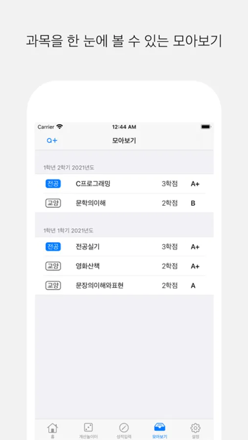 * 모아보기: 정렬된 학기별 과목을 한눈에 볼 수 있는 공간