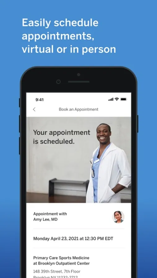 • Schedule in-person or virtual appointments with physicians, physical therapists, and other specialists