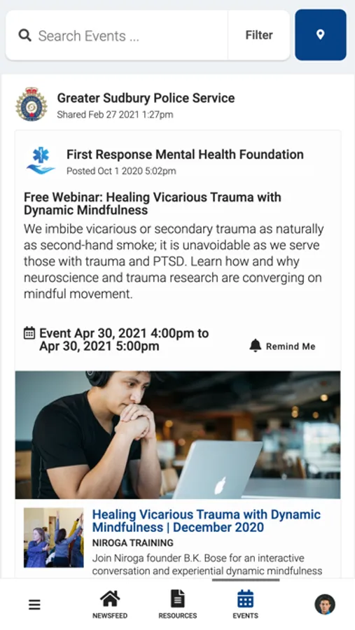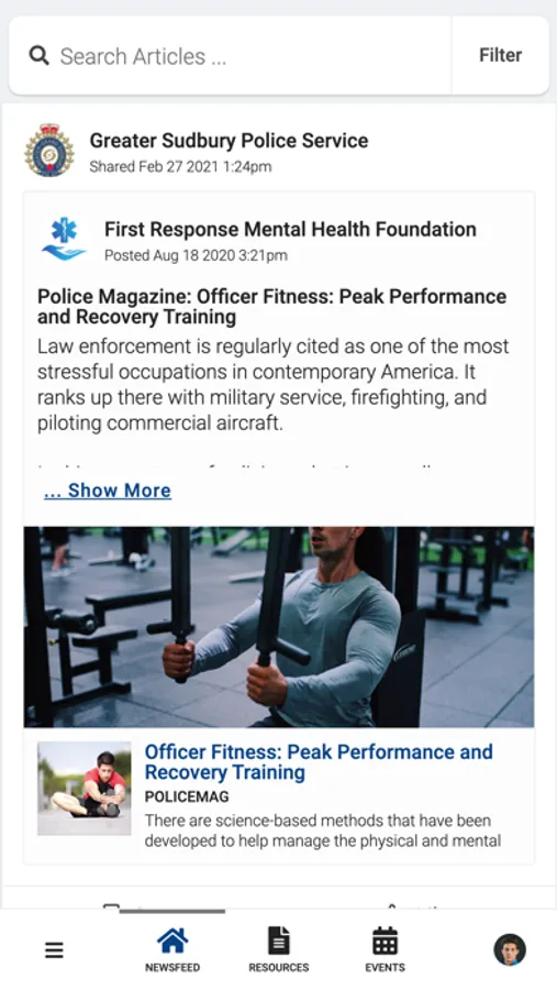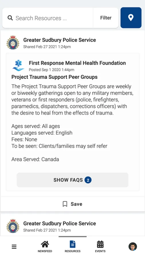 GSPS PeerConnect connects the public to information about Greater Sudbury Police Services' programming and services. Users have access to newsfeed articles, resources, and events related to mental health, wellness, culture, and belonging.