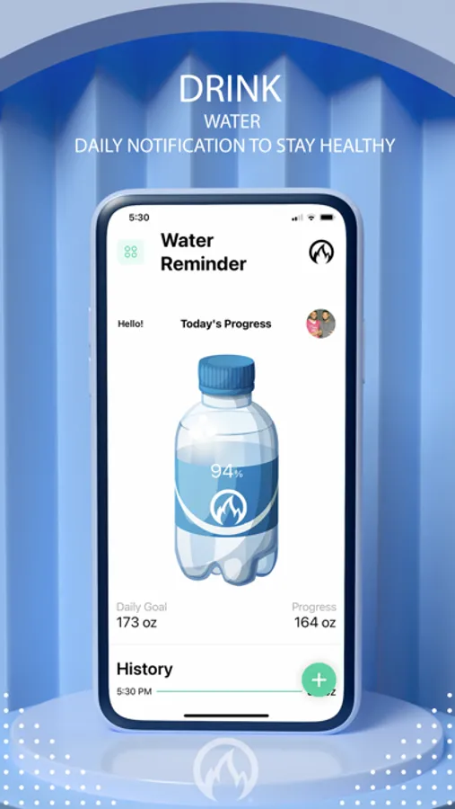 Set your daily Water consumptions and set a daily Water Reminder for you to meet your goals