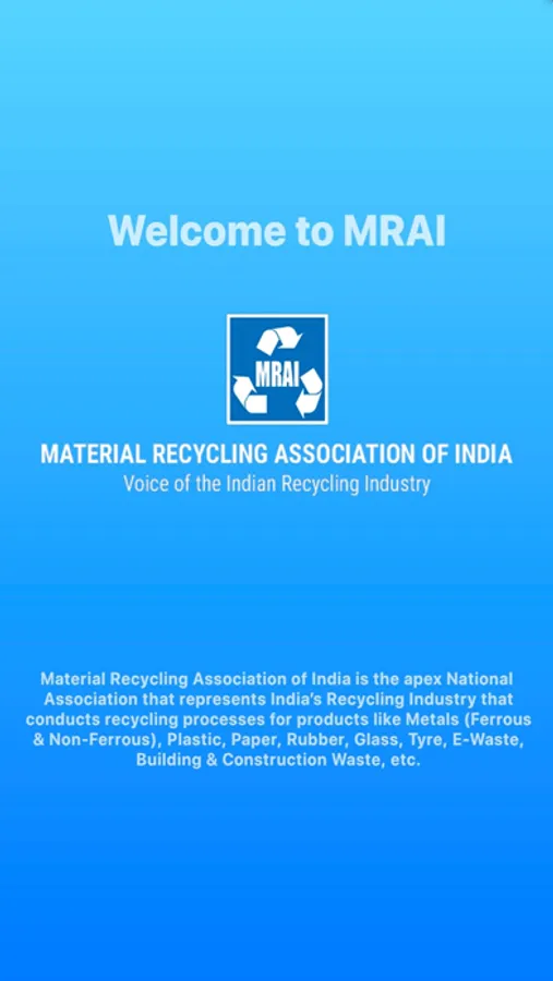 Material Recycling Association of India (MRAI) has developed this mobile application open for all. It is a tool for recyclers to obtain industry news and information, connect with others in the industry, and access resources to improve their operations. The users will get special access to view the complete list of members associated with MRAI along with full details of past events held at MRAI. They also can download news & events which are updated on frequent basis.
