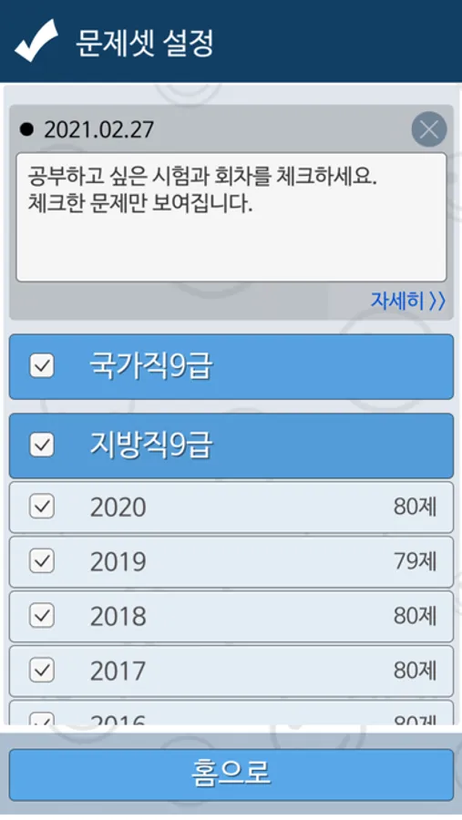 공부하고 싶은 단원(출제범위)을 설정합니다.