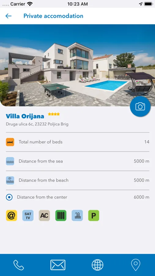 All private accommodation facilities are presented on a map of Nin. Click on each accommodation icon, and more detailed information will appear such as a photo gallery, number of beds currently available and contact information: websites, emails, phone numbers, etc. Travellers are able to contact the landlord by email or by phone, calling directly from the application.