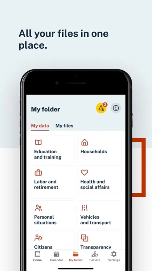 - My data. Consultation of personal data from different state, regional and local administrations, such as: social benefits (paternity, maternity, retirement, minimum vital income, etc.) and the history of the last year, real estate, driving license points, vehicles and ITVs, university and non-university qualifications, non-existence of criminal records, large family status and disability, registration, university enrollment, degree of dependency, working life, etc. In addition to queries, in the cases agreed with the competent body, this data can be downloaded in PDF or QR format to a wallet on the device. This section will be constantly growing.