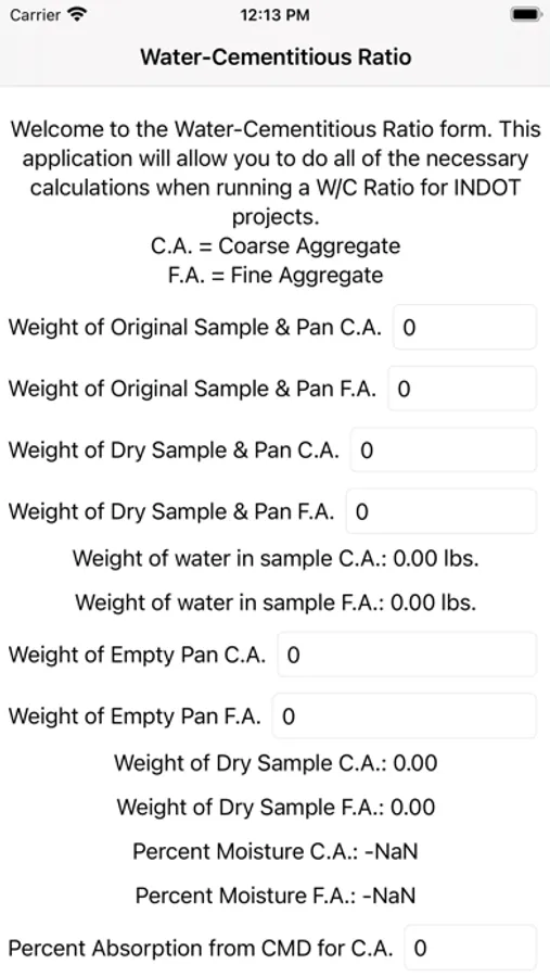 This application will allow you to do all of the necessary calculations when running a W/C Ratio for INDOT projects. If using this outside of the State of Indiana, please check with your local DOT testing department to make sure this will be sufficient.