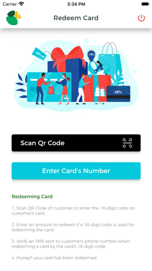 Merchant enters this 16-digit code to redeem the card but this goes through sms verification from customer.