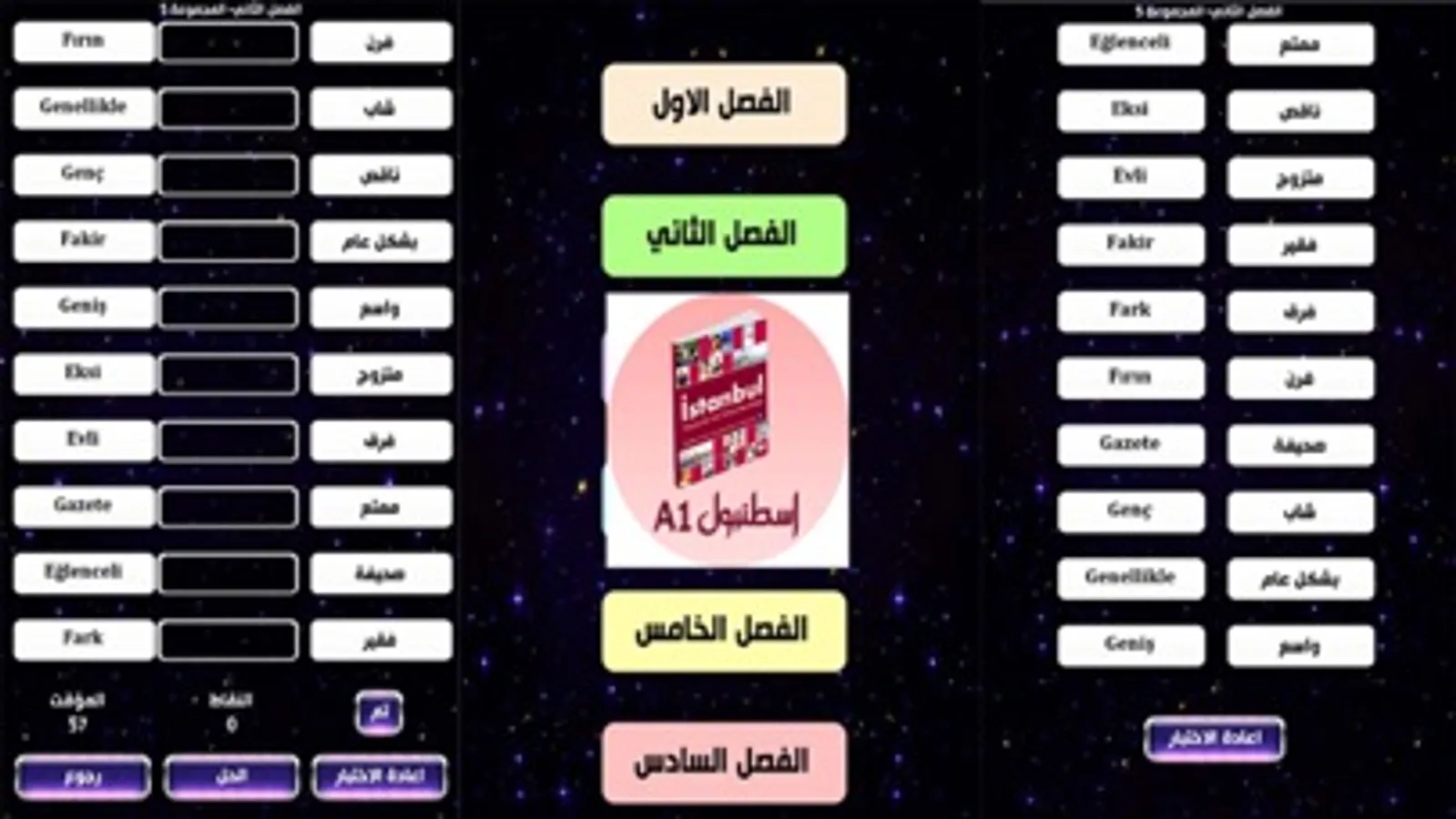 تطبيق يساعد الراغبين في تعلم اللغة التركية من حفظ مئات الكلمات المصنفة حسب ظهورهم في كتاب اسطنبول A1