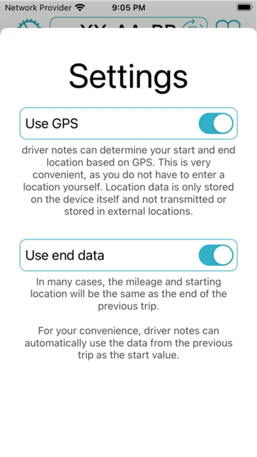 Driver Notes does not need to be active while driving. Driver Notes updates your location the moment you press "Stop" and uses the same data when you drive away. Rather enter your location yourself instead of using GPS? No problem! Choose the setting you like.