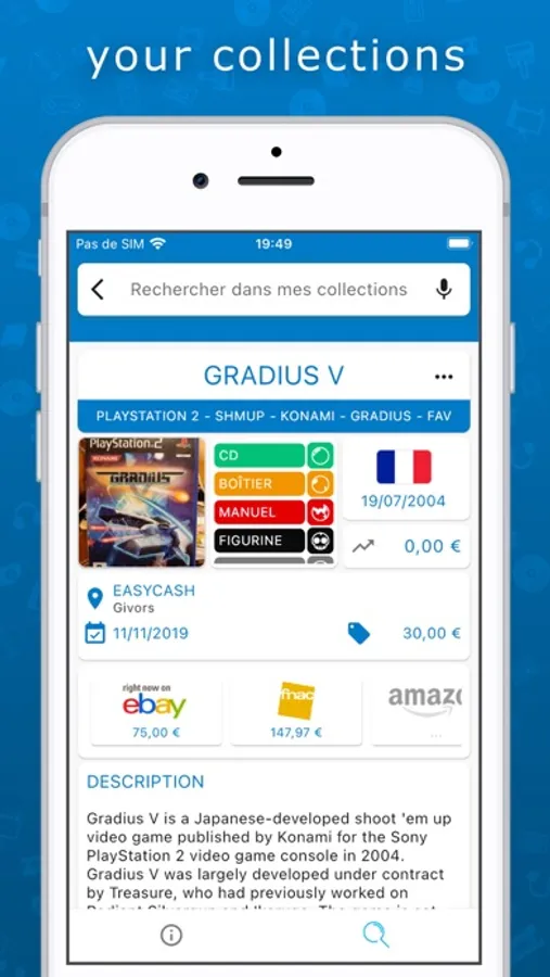 What’s more tiresome than entering each item in your collection by hand? Thanks to WANO, scan its barcode, visualize it with the camera or dictate its name and voila! It is added to your collection!