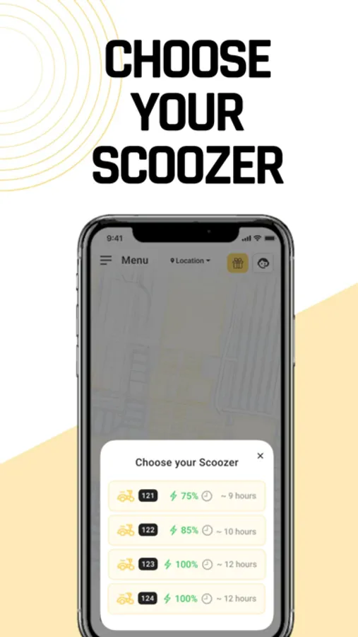 Once you arrive at the station, click SCAN SCOOZERS. This will show you the list of available scooters that you can choose from. Make sure your Bluetooth is on!
