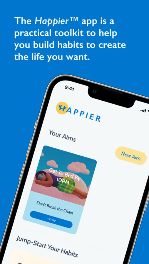 The Happier app is free to download. Track one aim without a subscription to find the habit-change tool that works for you. Subscribe to unlock unlimited aims and get the flexibility to track all the habits that make you happier, healthier, more productive, and more creative.