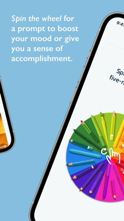 Spin the Wheel for fun daily challenges to get a quick boost of happiness, energy, or creativity.