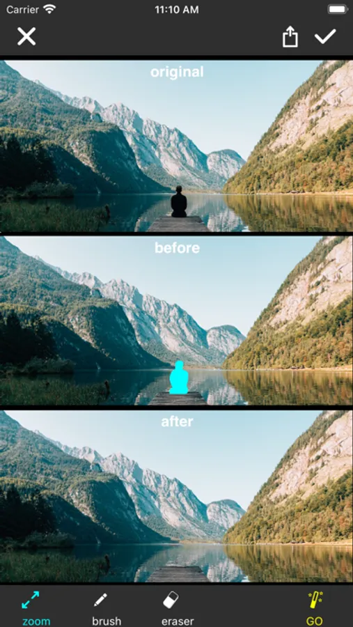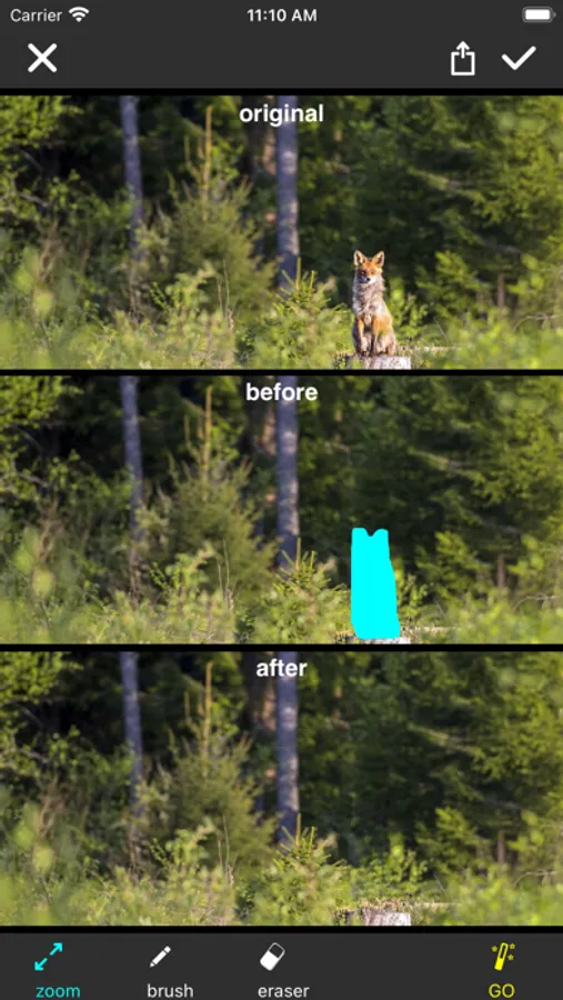 *Just mark the object to be removed with a brush, and then click the 'GO' button. The object is removed immediately!