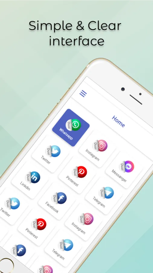 Dual Accounts Lite allows you to multiple accounts of the app on one iPhone. Dual Space - Multi Accounts App will help to manage your private social media account and public media account like Facebook, Instagram, WhatsApp, Messenger, Telegram, Pinterest, LinkedIn, Twitter, Tinder.