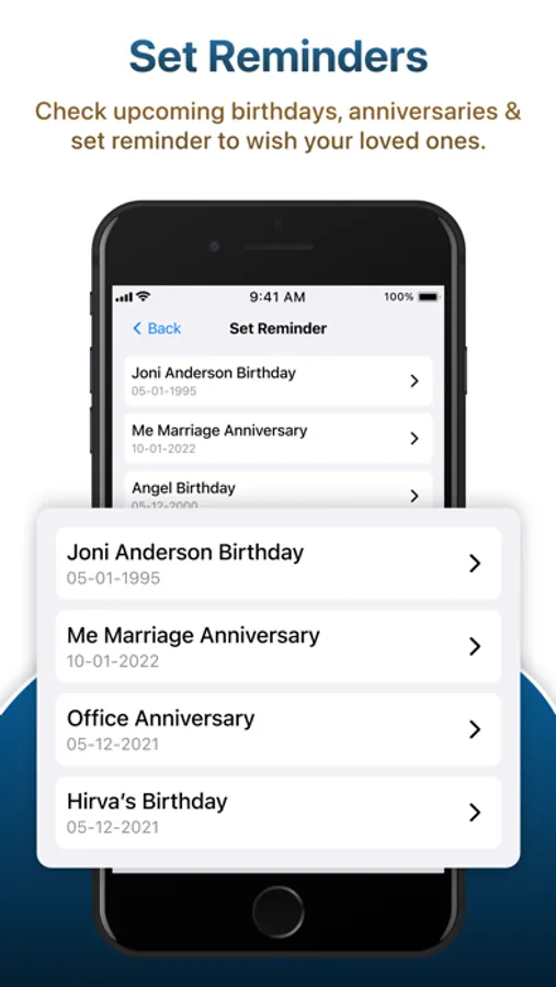 Save your dates in the app including birthdays and anniversaries. Never again forget important dates!
