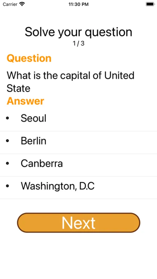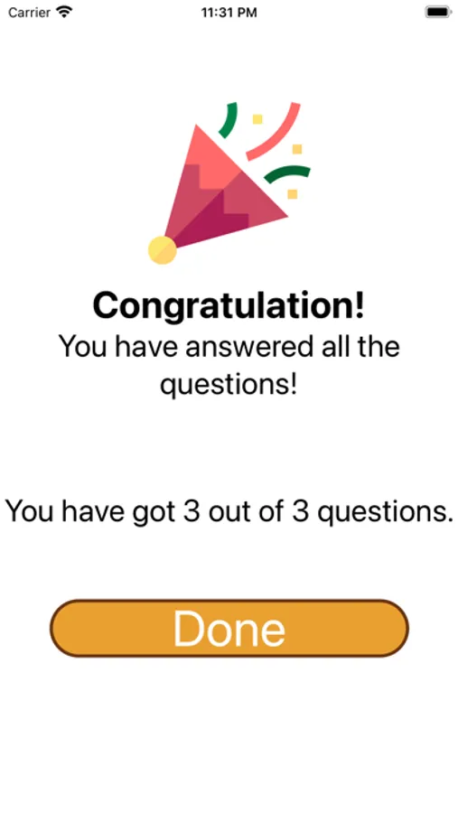 The app records statistic showing how many questions you have solved and got correct.