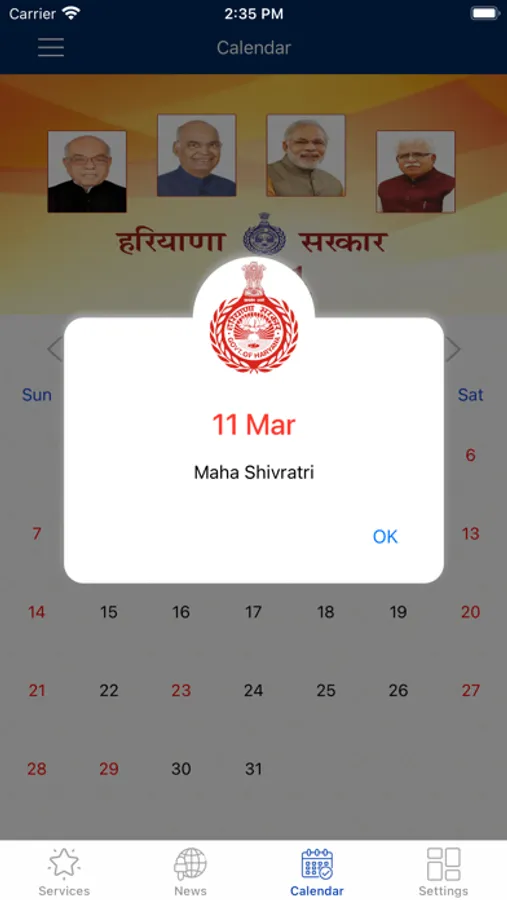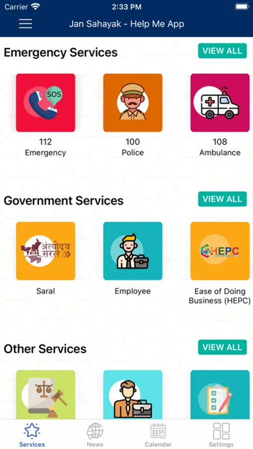 Multiple other Government services like latest Jobs, latest Tenders, Utility Bill Payments, Employee/ Pensioner Services, News, upcoming events, Calendar, Haryana Govt. Directory etc. are also made available to users of Jansahayak App.