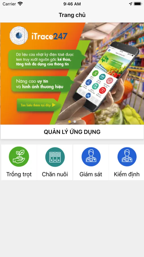 Phần mềm iTrace giúp là phần mềm giúp nhà quản lý có thể truy xuất nguồn gốc xuất xuất xứ. Kiểm tra giám sát được nguồn gốc của sản phẩm.Sản phẩm được xây dựng bởi đội ngũ kỹ sư công nghệ thông tin Công ty cổ phần công nghệ và truyền thông Smart Life.