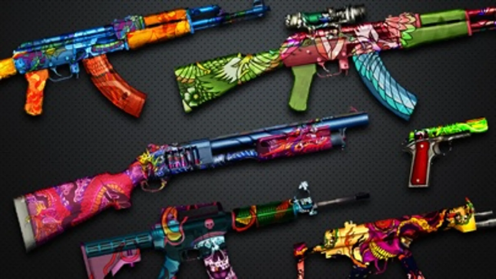 Various gun types like snipers, rifles, grenades, shot guns, ak47 gun etc