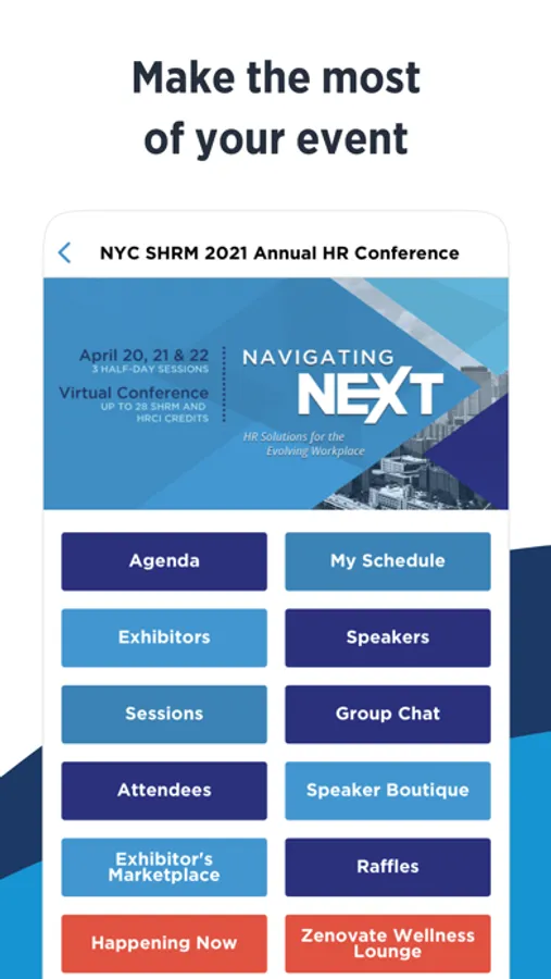NYC SHRM's Annual HR Conference, Navigating NEXT, will provide HR solutions for the evolving workplace, allowing attendees to enjoy 3 content rich 1/2 day sessions with HR thought leaders, networking with solution providers and other HR colleagues. Download the latest version and join us on April 20, 21 & 22 to Connect, Learn and Grow.