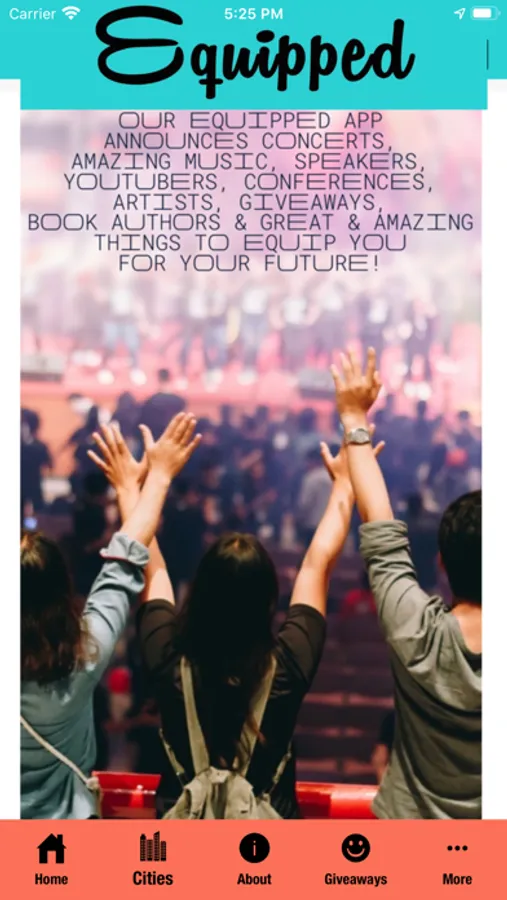Equipped announces events in cities across the nation. Many people want to volunteer but don't know about the opportunities available. Equipped shows these as well as personal development conferences, concerts, news about music artists and all events in their location to help them to grow and improve as an individuals and groups!