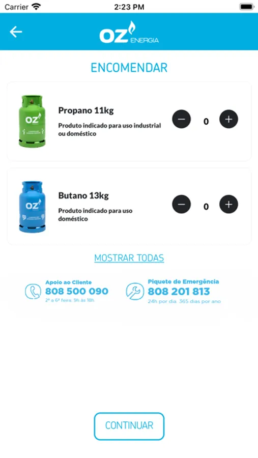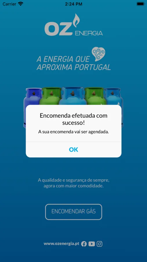 Na nova App OZ Energia pode agora fazer as suas encomendas de garrafas de gás.