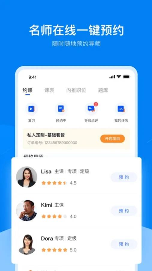 2 预约1v1课程导师:预约时间灵活多样满足不同时段的学员在线上课,课前6小时随时一键取消预约,课程导师均来自名企管理岗位拥有多年从业经验。