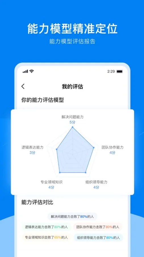 4 评估报告:导师根据学员上的评估课的结果出能力评估报告,根据报告的能力评估模型和能力评估对比给学员规划课程和学习建议。