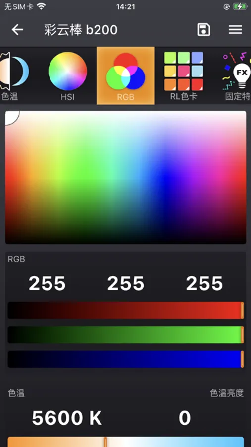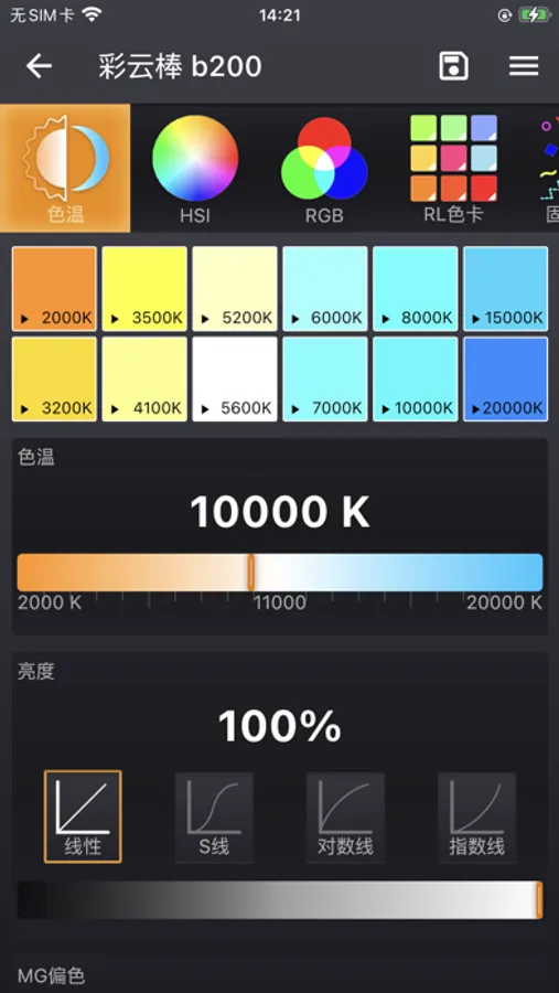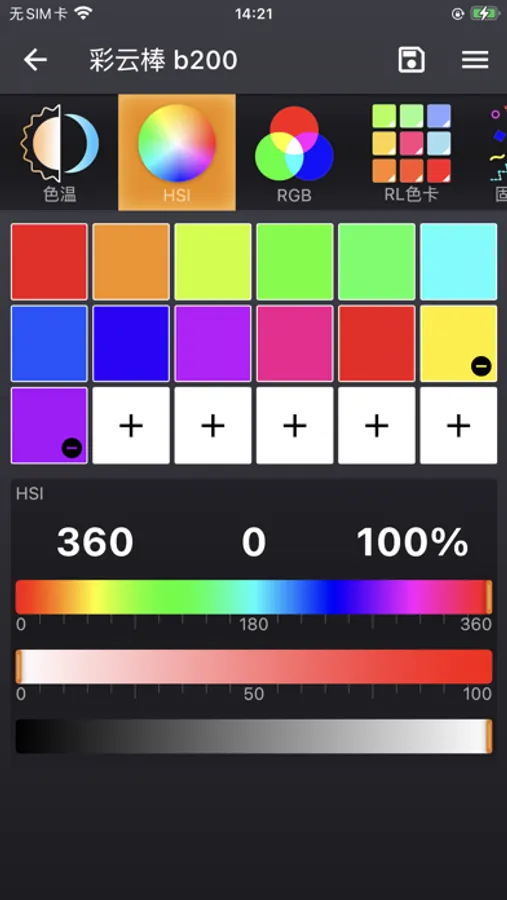 DeSal Lite+ is wirelessly connected to lighting fixtures via Bluetooth, and can control multiple lighting fixtures individually or in groups to achieve lighting control of the brightness, color temperature, HSI, RGB, multiple scene modes, as well as preset color effect. (The above lighting control features need to be supported by the related lighting fixtures)