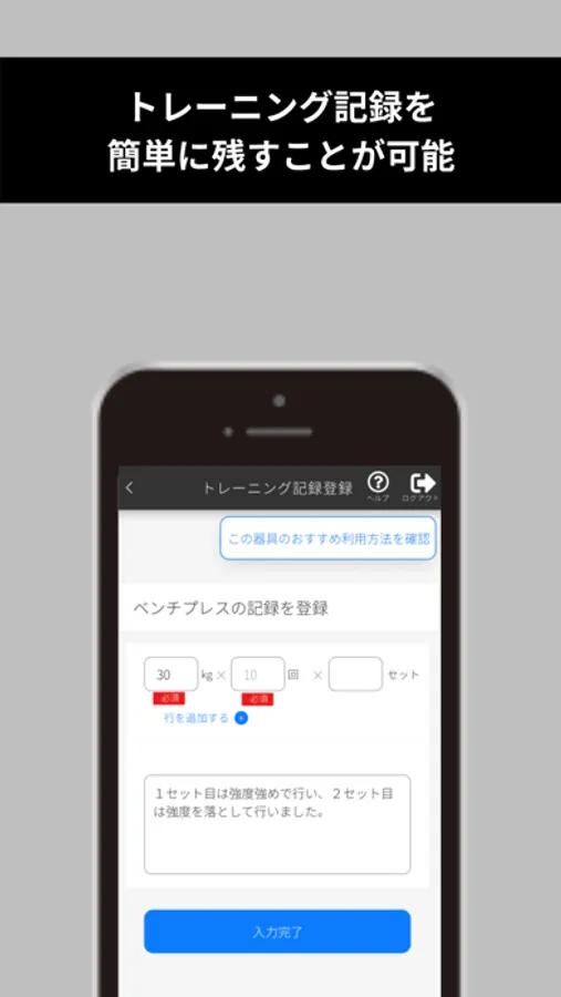 ・器具毎のトレーニングログ登録/記録確認