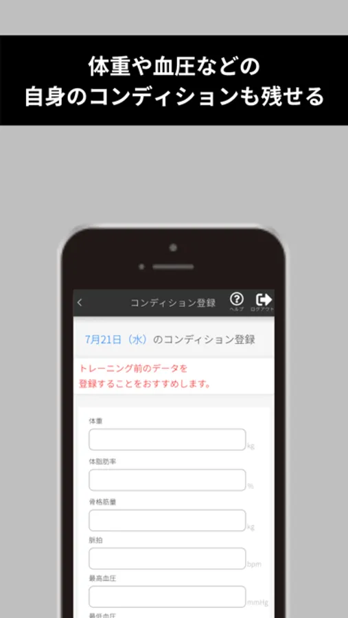 ・コンディション(体重・血圧等)の登録