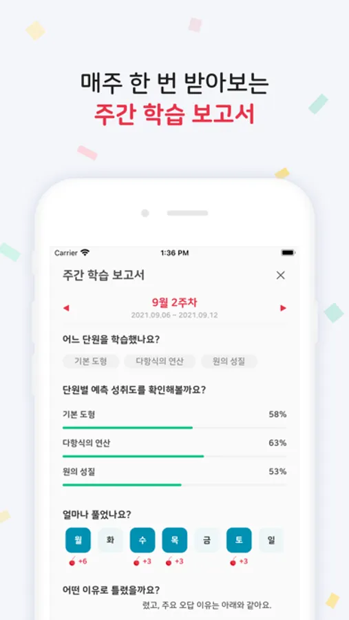 - 주간 학습 성취도 보고서를 받아볼 수 있습니다.
