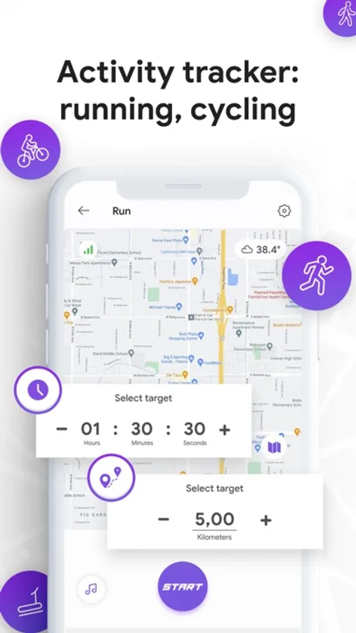+ Option to broadcast guidance about the distance, time, speed, and elevation.