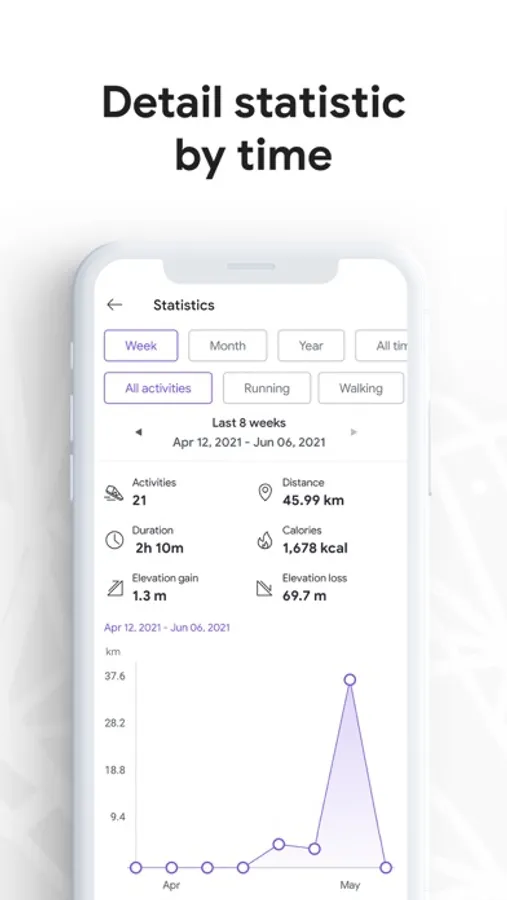 + Set distance goals: the smallest distance goal starting from 0.5km and can gradually increase