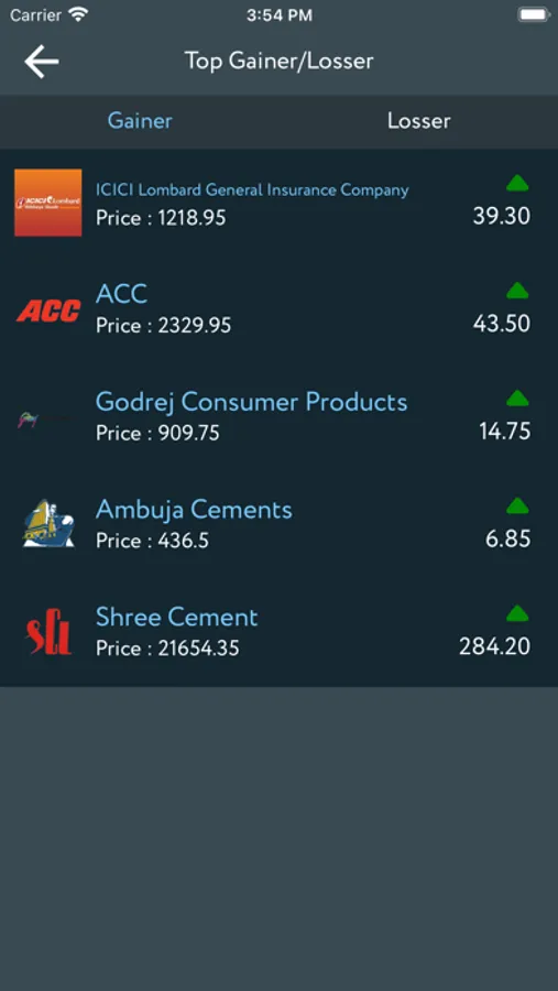 9) Top gainer and loser for today