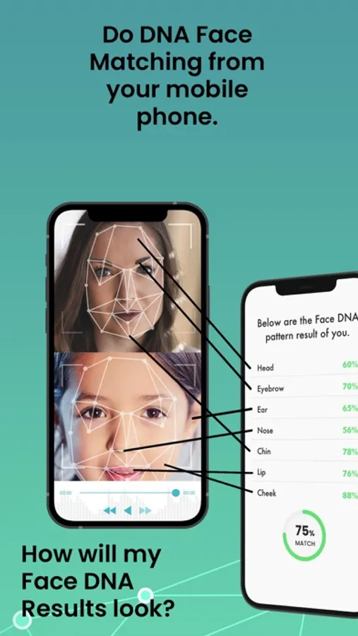 Face IT DNA Technology is a big deal. It uses a similar theory to what's used to unlock your mobile phone or office building using your face. It takes the facial profile of one person, calculates the unique facial points and compares them to another person to see if those two people could possibly be related.