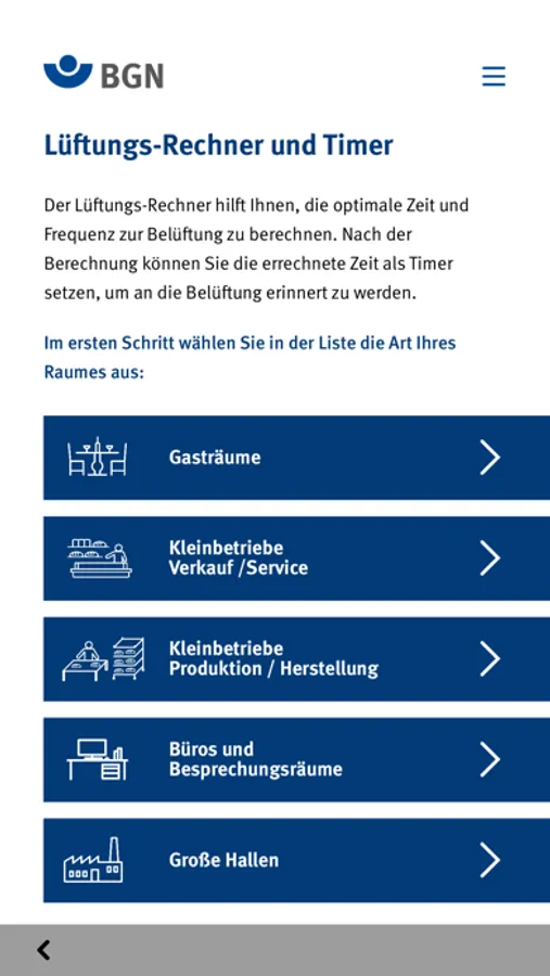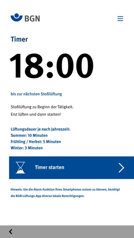 BGN-Lüftungs-Rechner und Timer