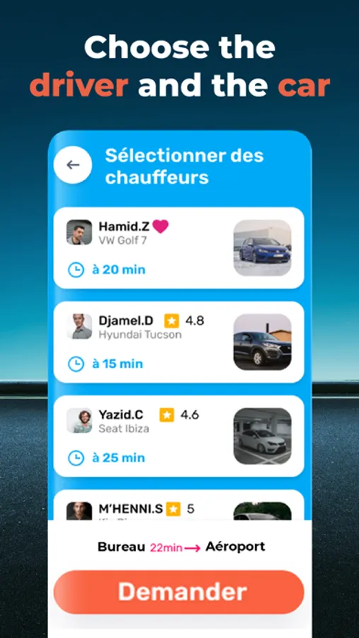 At Arbin, we are changing the rules and giving you back the choice. Unlike Yassir, Careem, TemTem, Heetch, Coursa, Amir..., which are available in Algeria, it is up to YOU to personalise your trip by choosing the driver and the vehicle that suits you best.