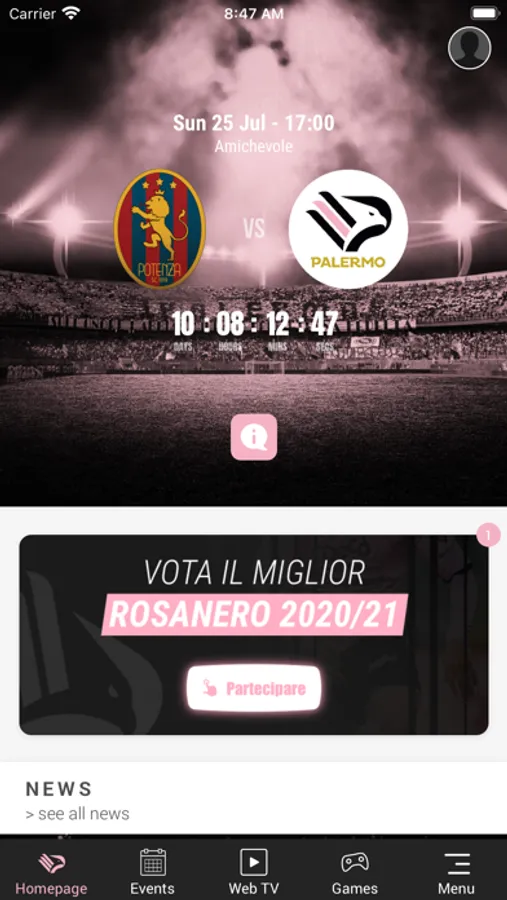 - Earn points by showing up at the stadium during the match days and by participating at quizzes, poll or predictions