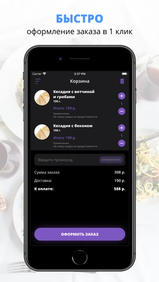 Скачивайте наше приложение, оформляйте заказ и наслаждайтесь любимой едой, где бы Вы ни были! Приятного аппетита!