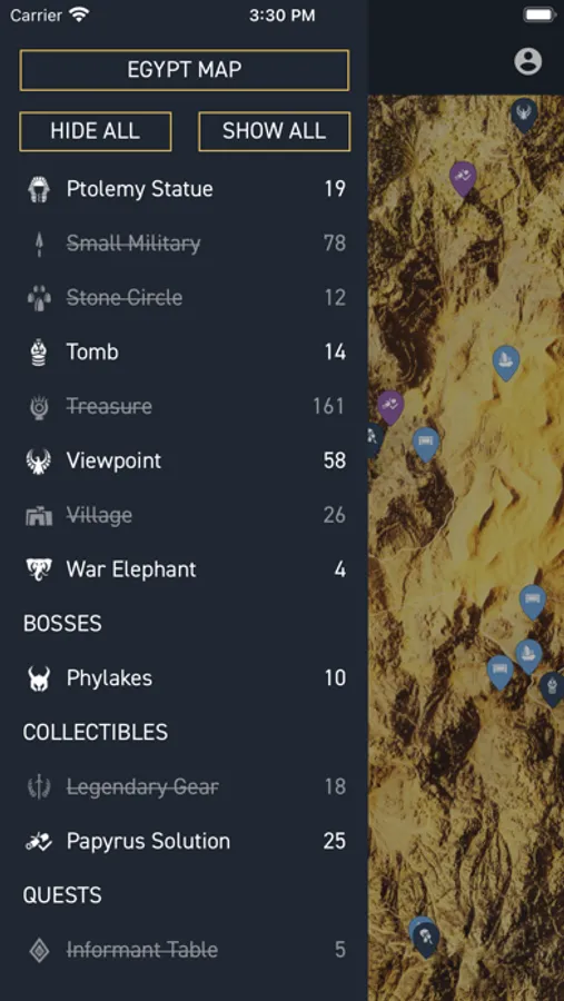 An unofficial fan-made map for AC: Origins. Find everything in Egypt with this completionist map!