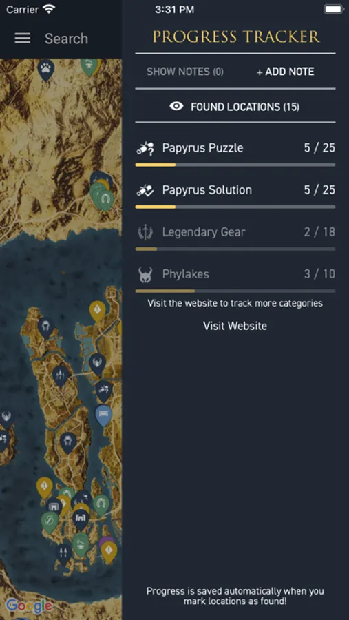 • Progress Tracker - mark locations as found and track the progress of your collectables.