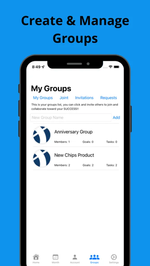 - Create groups and invite users to join you and collaborate to achieve one goal.