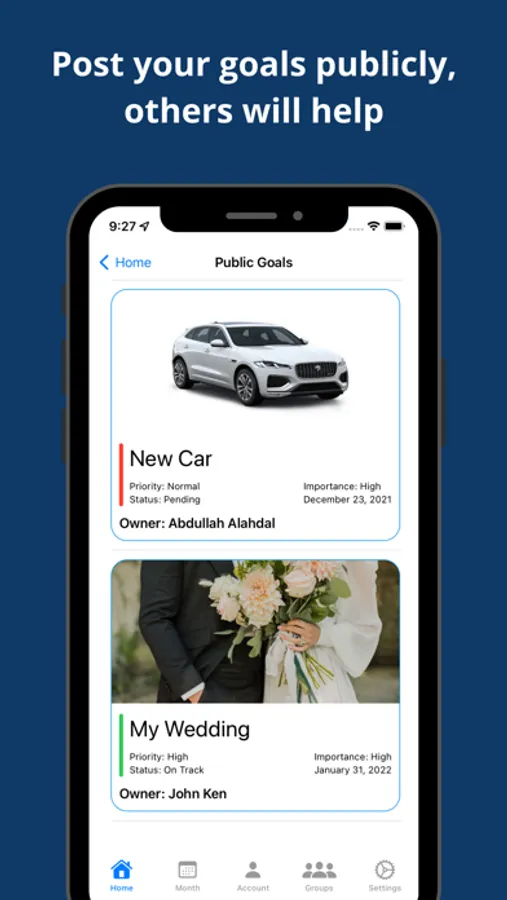 - You can make a goal public, all users of the application can see your goal, share their notes/comments to help you avoid a mistake they have made.