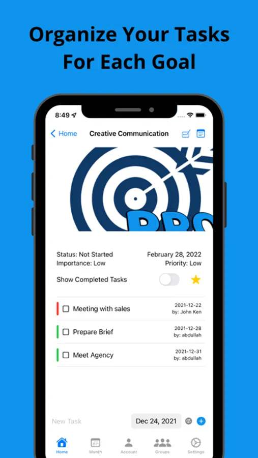 - All users in the group can add notes/comments to the goal to keep tracking and share experience.
